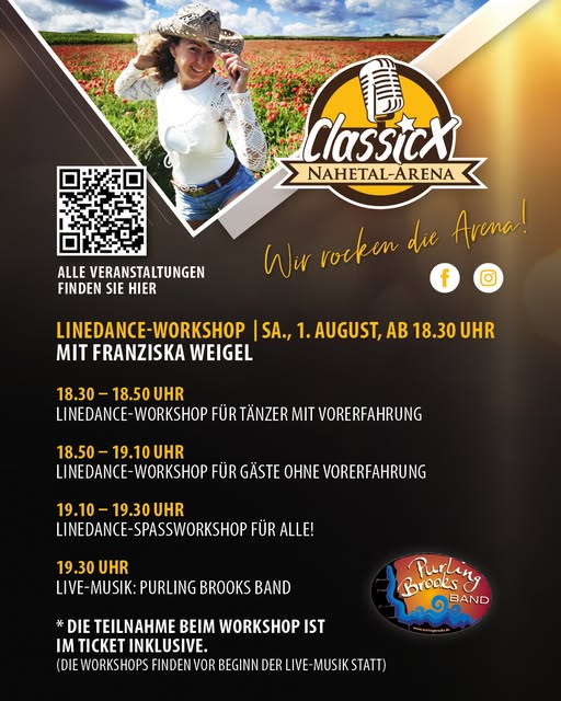 18:30 – 19:30 Uhr: Linedance Workshops mit Franziska Weigel